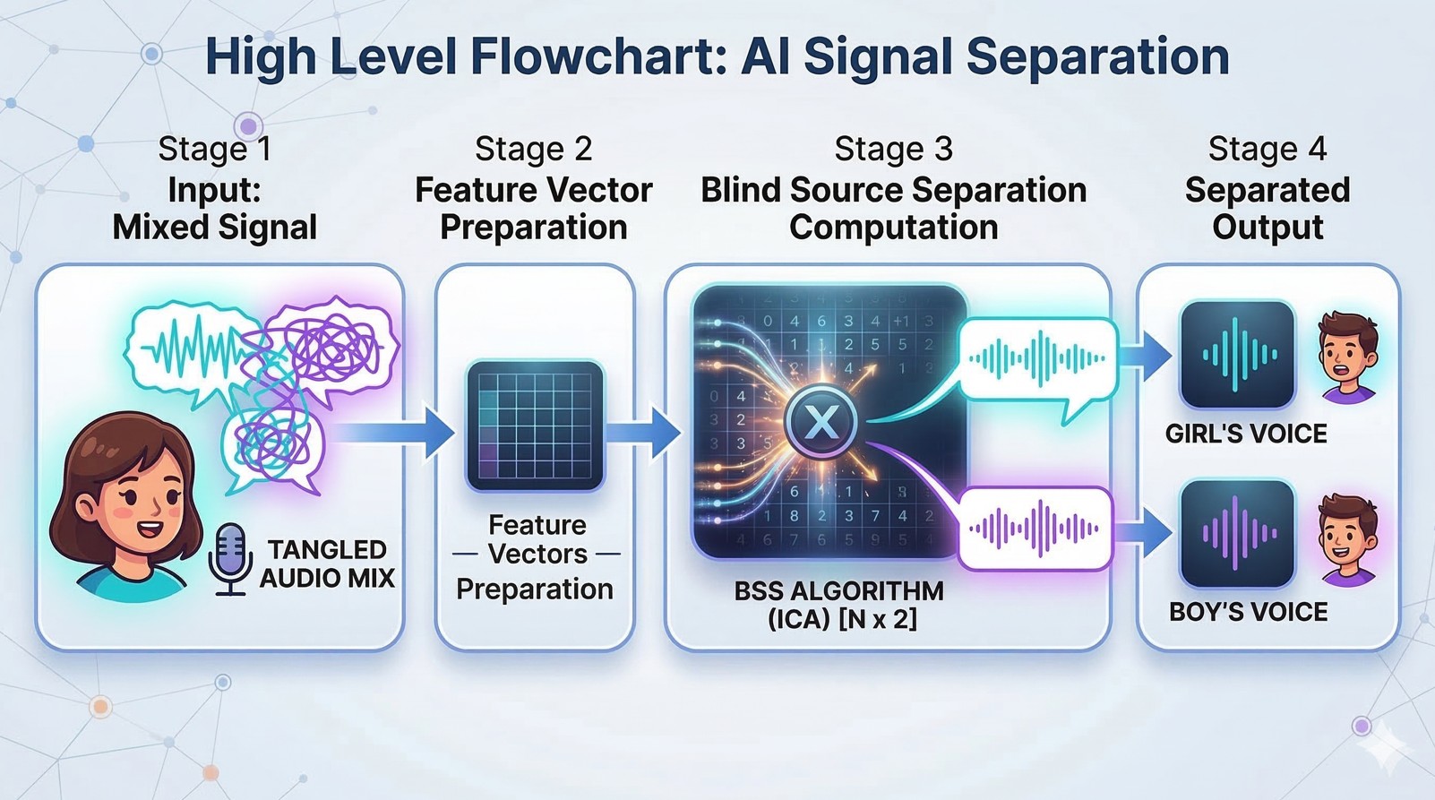 Understanding how linear algebra helps AI separate mixed audio signals into original sources.