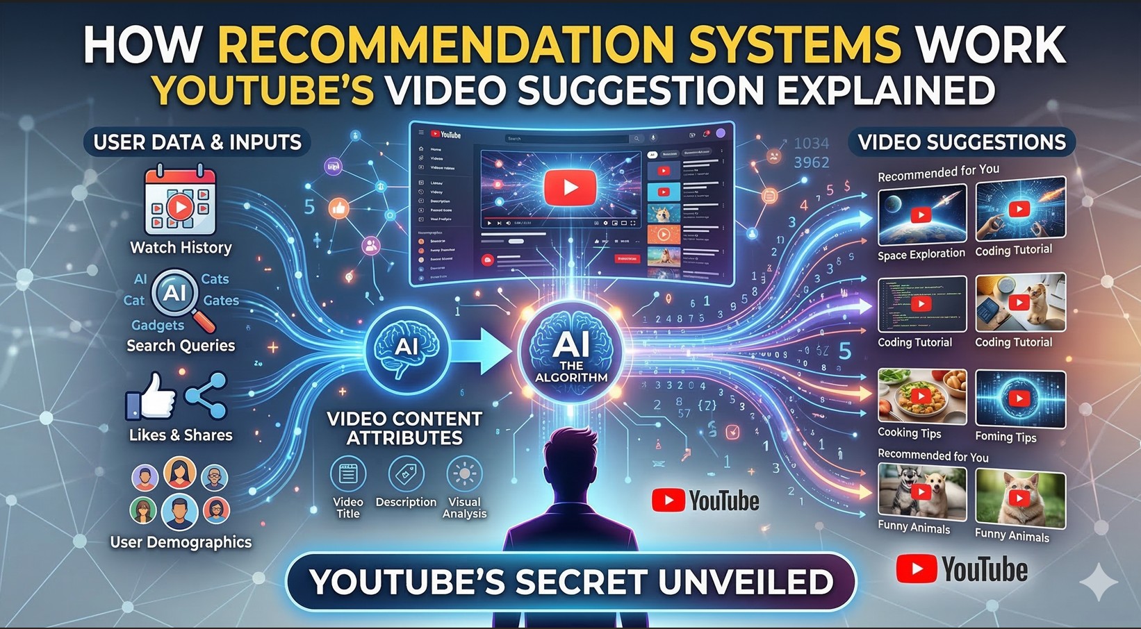 A simple explanation of how AI recommends content using matrix multiplication and linear algebra concepts.